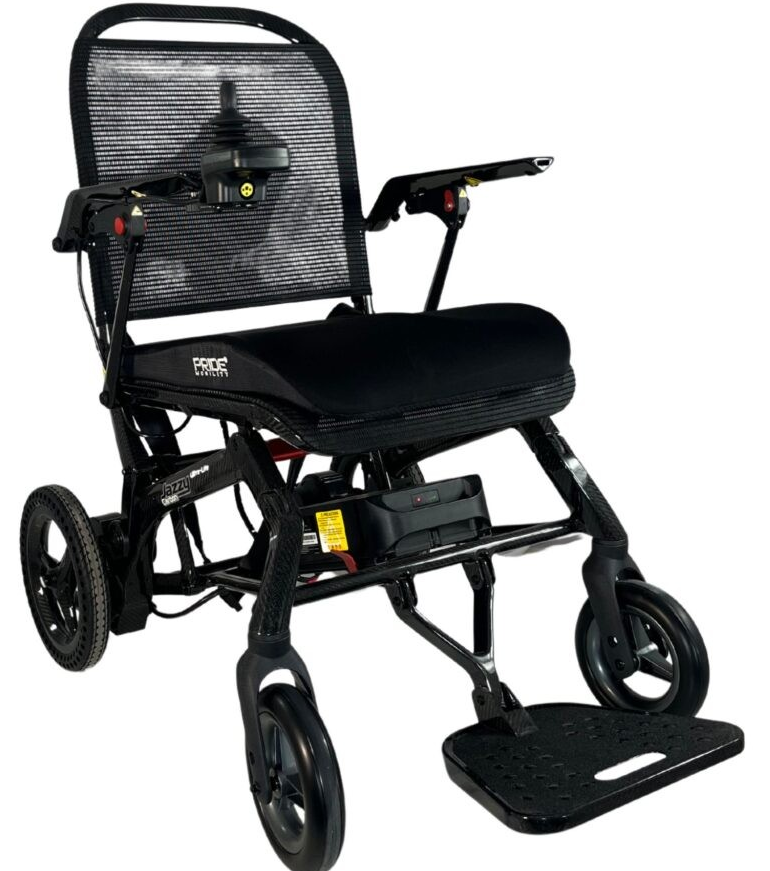 Introducing the Pride Jazzy Carbon Ultra Lite carbon fibre electric wheelchair, the lightest power chair in our range. Weighing only 14.5kg and crafted from durable carbon fibre, the Pride Jazzy Carbon Ultra Lite offers a sleek, modern design that blends style with functionality. Whether navigating your home, strolling through a café, or enjoying a day out with friends and family, this power chair ensures you stay mobile and comfortable.