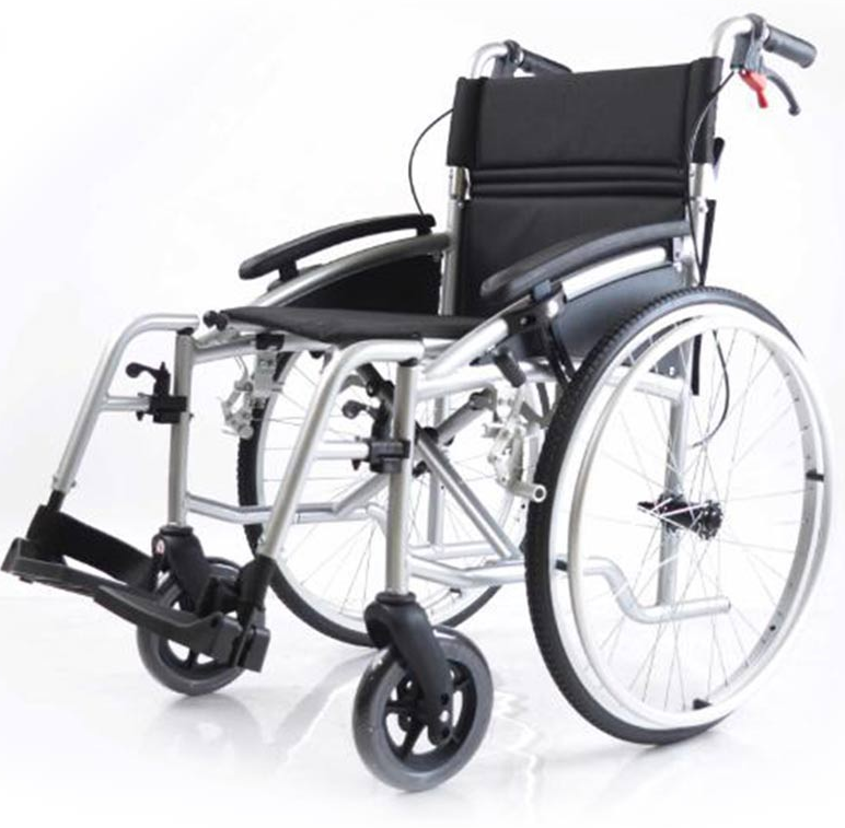 The i-Plus is a modern wheelchair which is both stylish and user friendly. The fold down arms help users get close to table and the black wheels and castors look great against the metallic paint. It folds down quickly and easily for transport and storage.