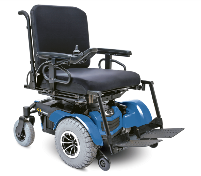 The Q1450 front-wheel drive bariatric power chair features an innovative design that provides exceptional outdoor performance while delivering outstanding tight space manoeuvrability. The Q1450 accepts a complete range of rehab seating and electronics options.
