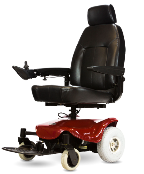 The Streamer Sport is a mid-size power wheelchair. It features a 300 lb. weight capacity, rear-wheel drive axle and 10” rear tires. The unit comes standard with height and width adjustable arm rests, adjustable angle footplate and a 19in. captains seat. The Streamer Sport has a 10-mile battery range and 2in. ground clearance that allows for easy maneuverability over most terrains.